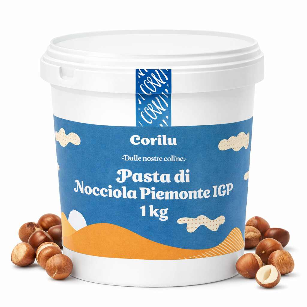 Pasta Pura di Nocciole Piemonte IGP 1 kg ottenuta da nocciole selezionate, tostate e raffinate con cura per preservarne aroma, intensità e naturale cremosità. Un ingrediente d’eccellenza, fine e vellutato, ideale per gelateria, pasticceria e preparazioni dolci in cui si vuole valorizzare il gusto autentico della nocciola.